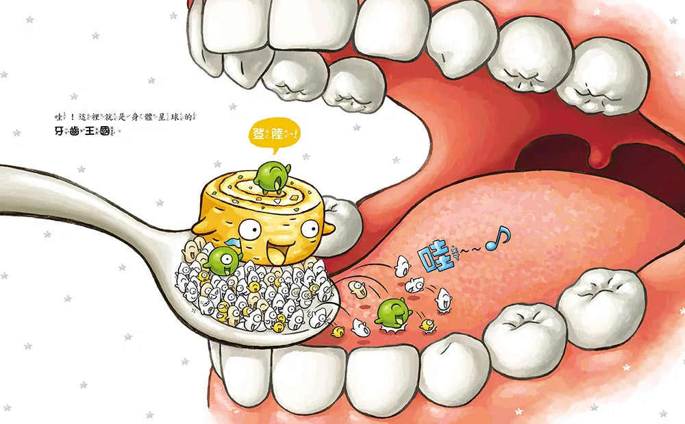 搭乘著湯匙宇宙船前往身體星球的牙齒王國。