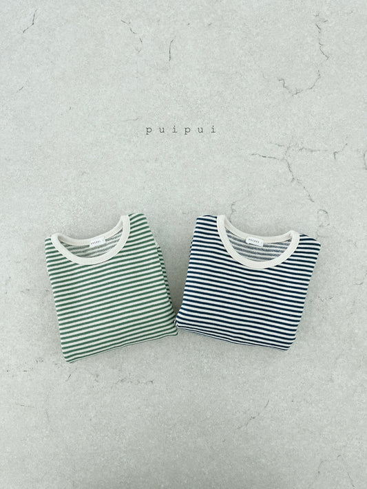 幼間條紋圓領長袖TEE