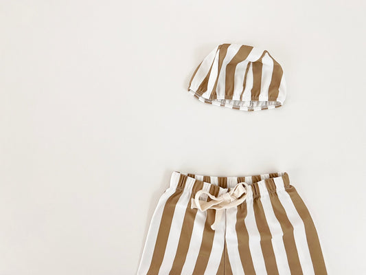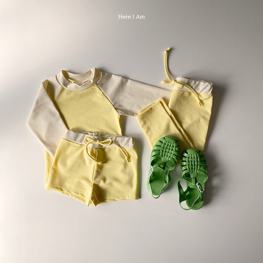 泳衣三件長袖配直條短卡其色