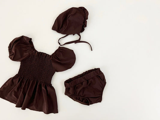 泡泡袖 連身泳衣 三件裝 兩色入